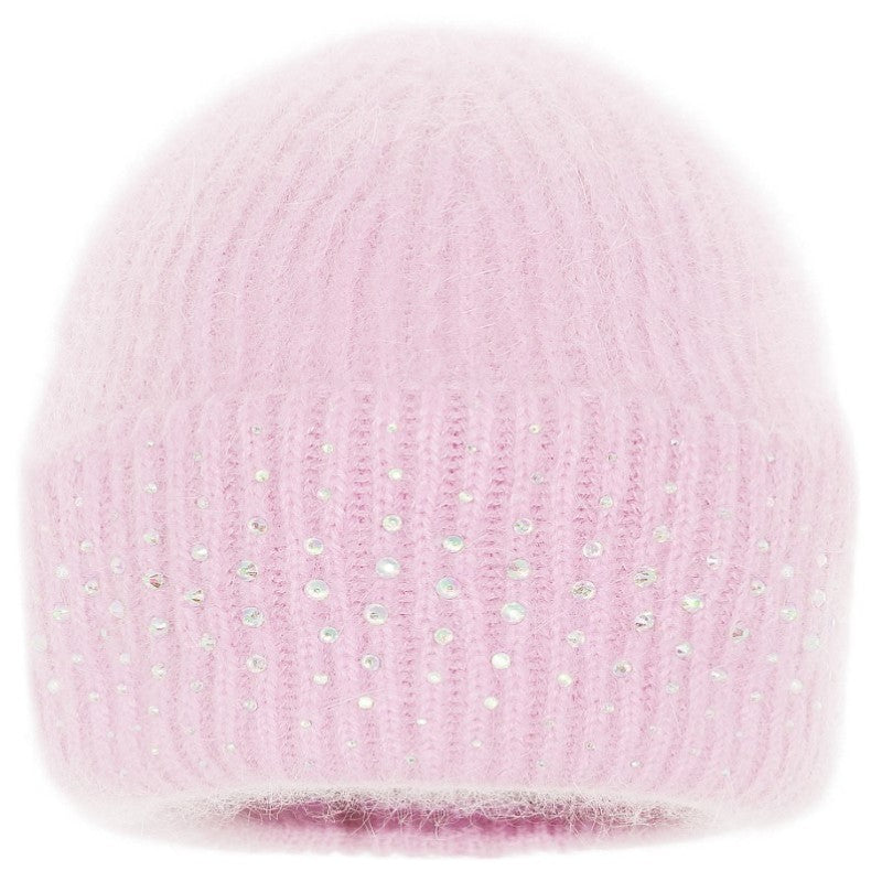 Knitted hat with glitter flowers