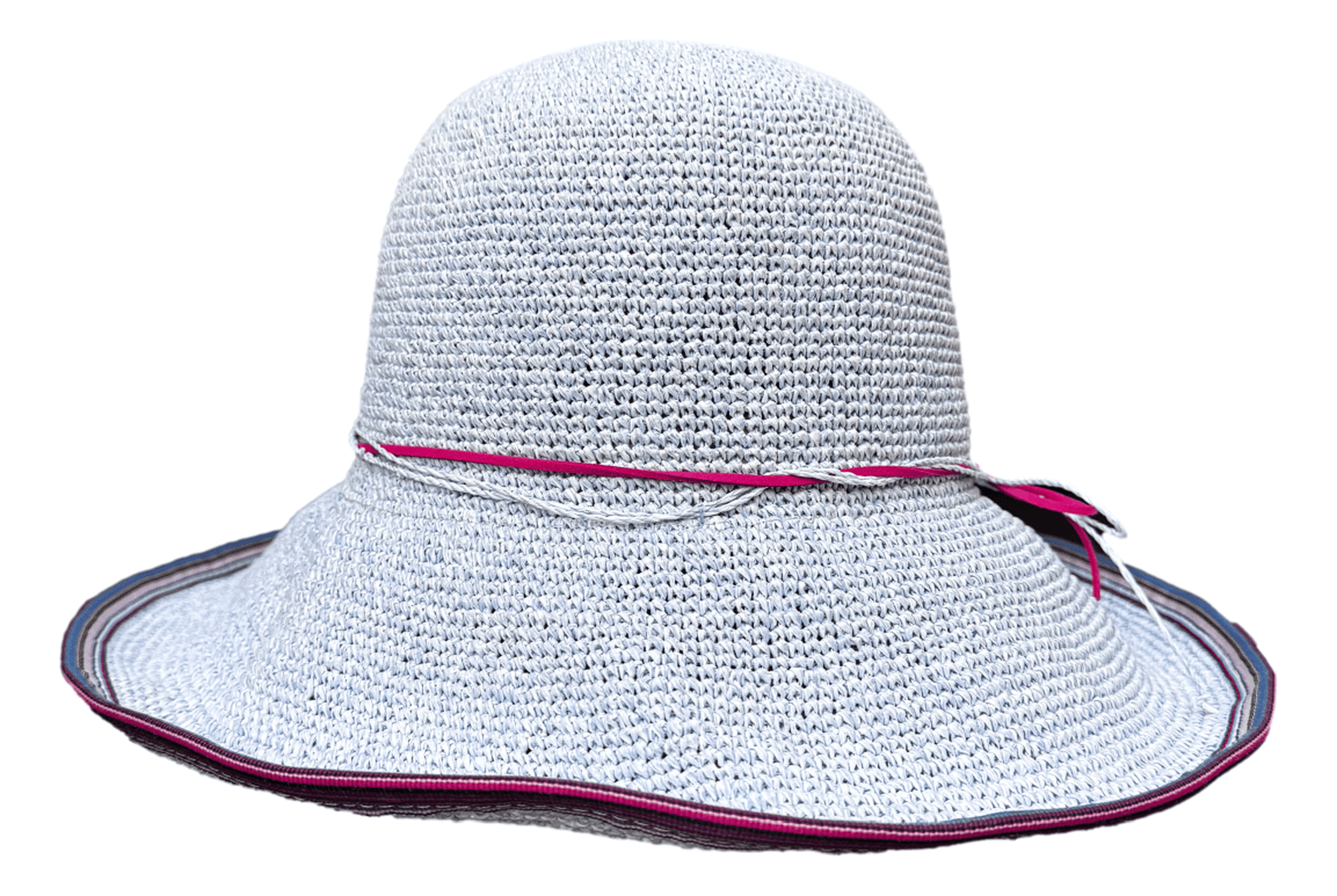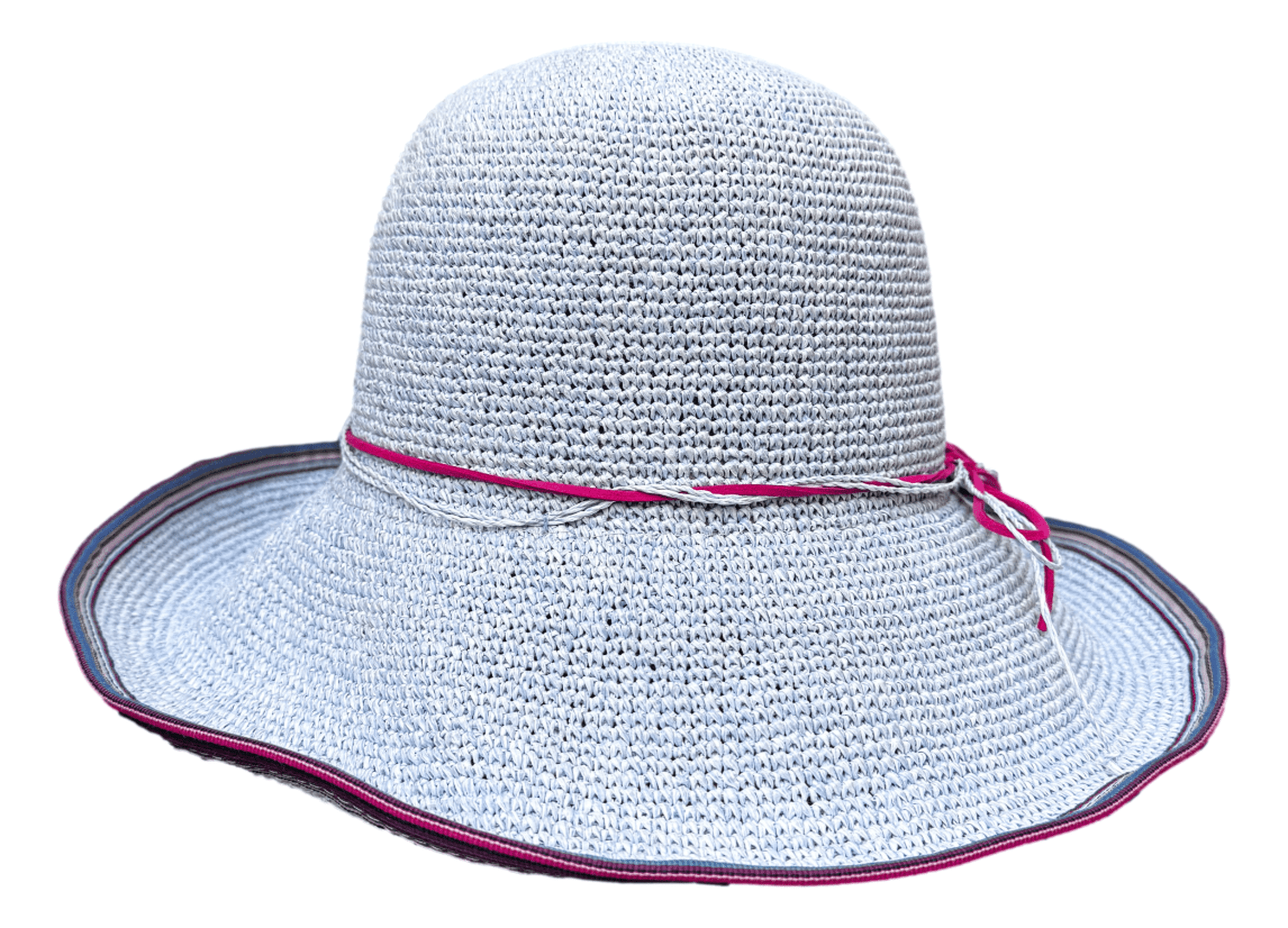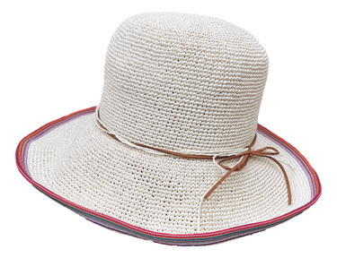• Mit gestreiftem Band und eingesticktem Draht vervollständigt er den Sommerlook!