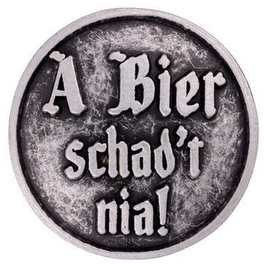 Das Accessoire "A Bier schad't nia" verkörpert die tiefe Verbundenheit zur bayerischen Trinkkultur und bringt mit seinem frechen Spruch herzliche Lebensfreude zum Ausdruck. Der detailgetreue Schriftzug in traditioneller Gestaltung macht diesen Gaudiknopf zu einem echten Highlight, das jedes Outfit mit Liebe zum Brauchtum bereichert.